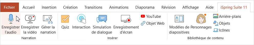 - Cliquez sur Enregistrer l’audio dans la barre d’outils d’iSpring Suite.