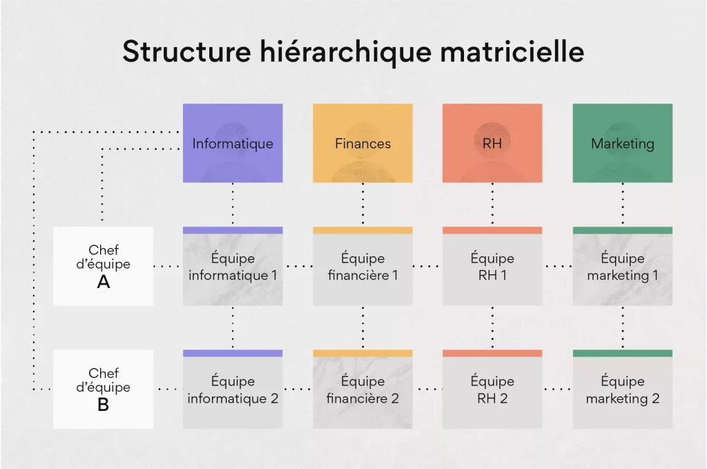 La notion de groupe n’est pas nécessairement hiérarchique. En effet, un groupe peut appartenir à plusieurs autres groupes (organisation matricielle) comme le montre le schéma ci-dessous :