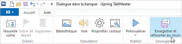 Modifiez la simulation de dialogue comme vous le souhaitez et cliquez sur Enregistrer et retourner au cours dans la barre d’outils.