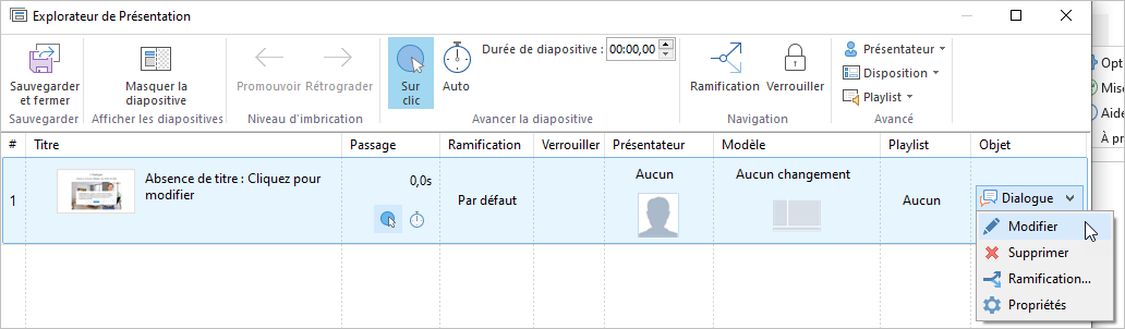 Il y a deux façons de modifier une simulation de dialogue qui a été insérée dans une présentation :