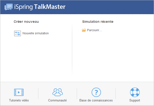 - Créez une nouvelle simulation de dialogue ou sélectionnez une simulation de dialogue déjà créée avec iSpring TalkMaster.