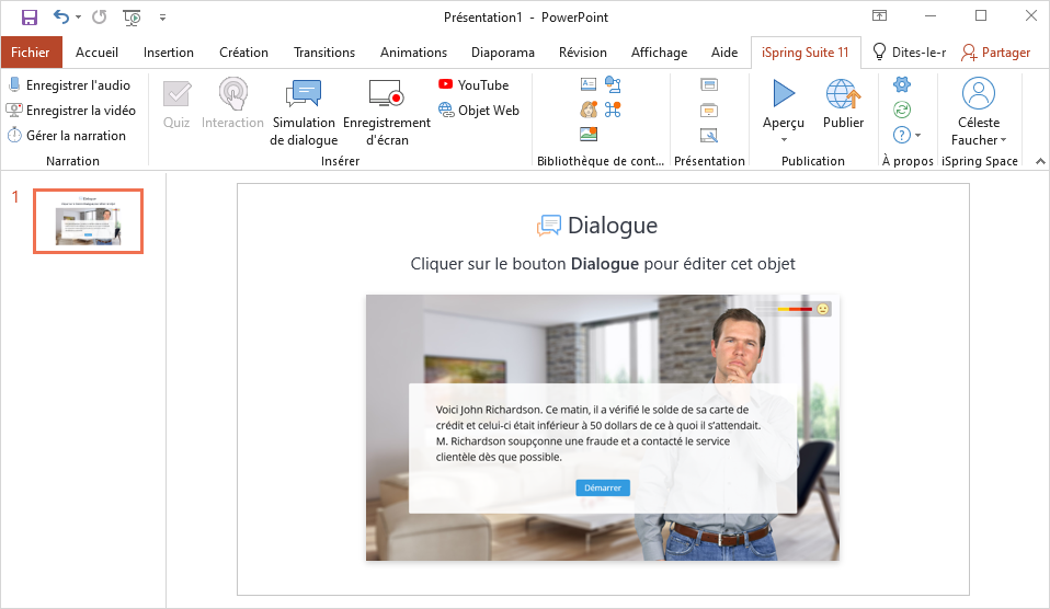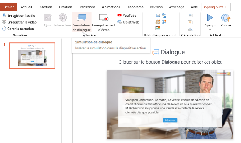 - Votre simulation de dialogue sera ajoutée à la diapositive spécifiée de votre présentation.