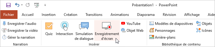 - Sélectionnez une diapositive avec une vidéo et cliquez sur Enregistrement d’écran dans la barre d’outils.