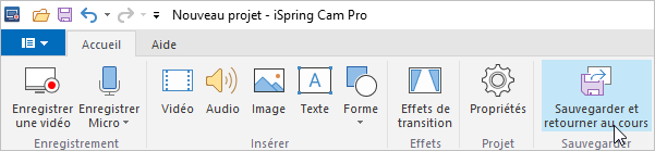 - Enregistrez une nouvelle vidéo et cliquez sur Sauvegarder et retourner au cours sur la barre d’outils.